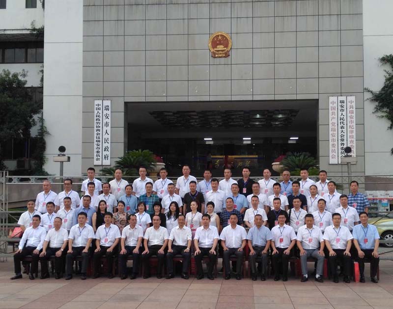 9月23號,瑞安市工商聯(lián)第十一次,總商會第六次會員代表大會在市政會議中心大會堂召開。省工商聯(lián)副巡視員黃強、溫州市工商聯(lián)副主席周有銘到會祝賀并講話,我市領(lǐng)導(dǎo)陳勝峰、葉世林、白一帆、方暉、陳世堯、林濟晚、陳榮臻、王建東參加會議。會議選舉了新一屆工商聯(lián)主席(總商會會長),我公司董事長項建忠當(dāng)選為工商聯(lián)主席(總商會會長)。